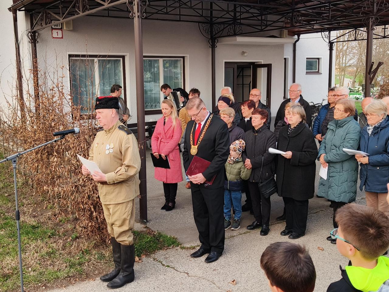 27.marca 2025 - Slávnostné kladenie vencov pri príležitosti 80. výročia oslobodenia obce pri pamätníku padlých Dolnoohajčanov na miestnom cintoríne.