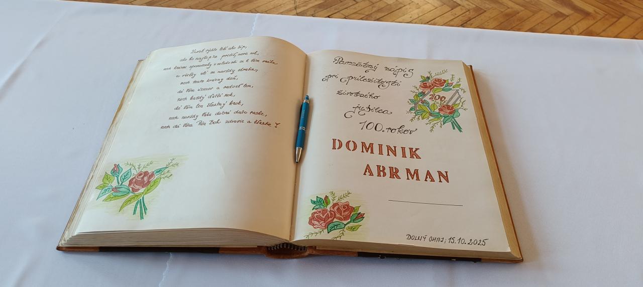 Dňa 15.10.2025 sa dožil významného a vzácneho životného jubilea 100 rokov náš najstarší obyvateľ našej obce pán Dominik Abrman.